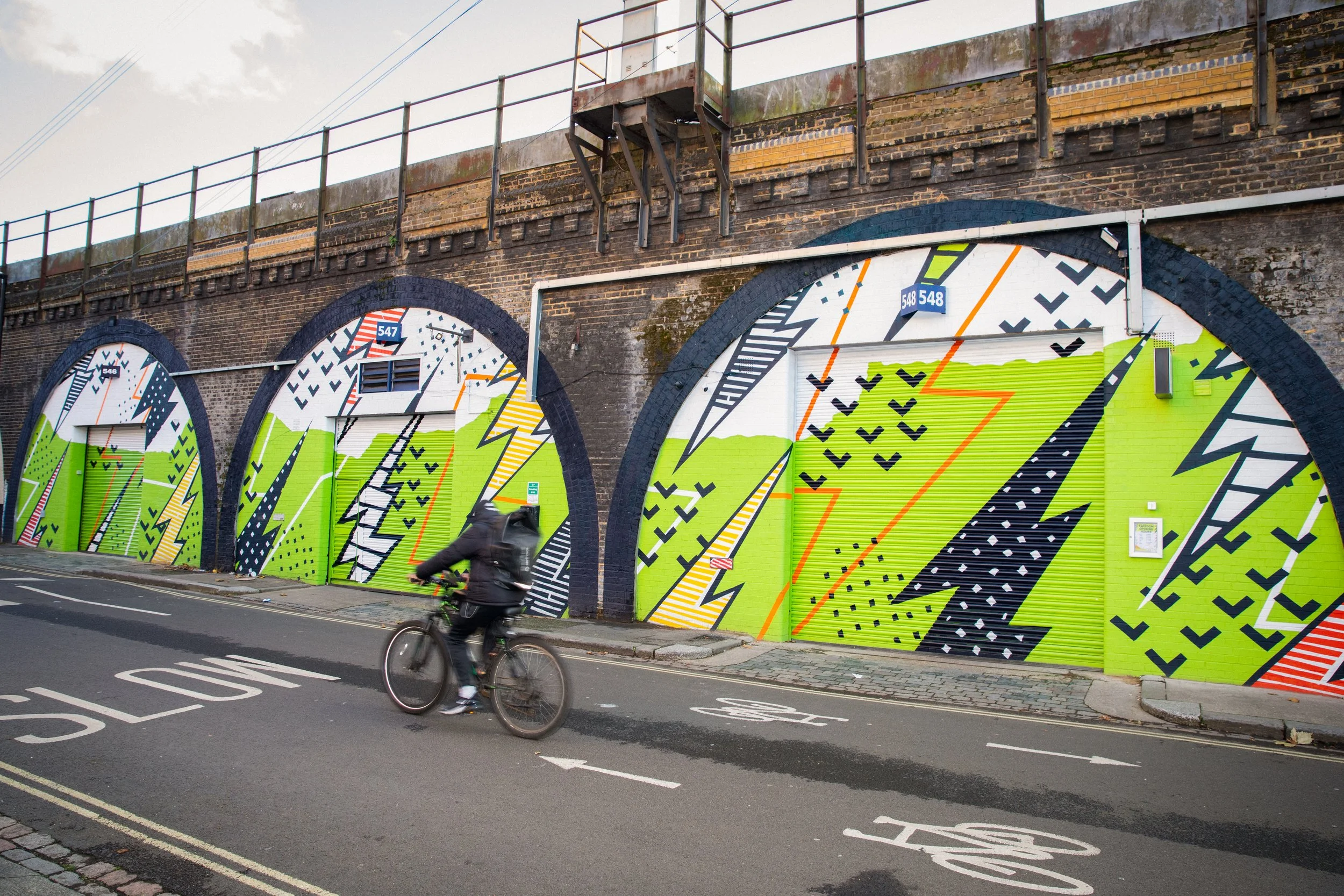 After final artworking to the specifications of the individual arches, the design was painted by mural artists Charlotte and Joe.